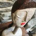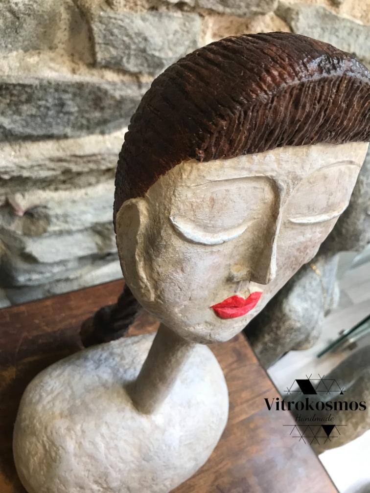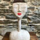 Τα κλειστά μάτια και η λιτή απόδοση των μαλλιών ενισχύουν τη μινιμαλιστική του ταυτότητα, μετατρέποντάς το σε ένα ιδιαίτερο statement διακοσμητικό για σύγχρονους και καλλιτεχνικούς χώρους.