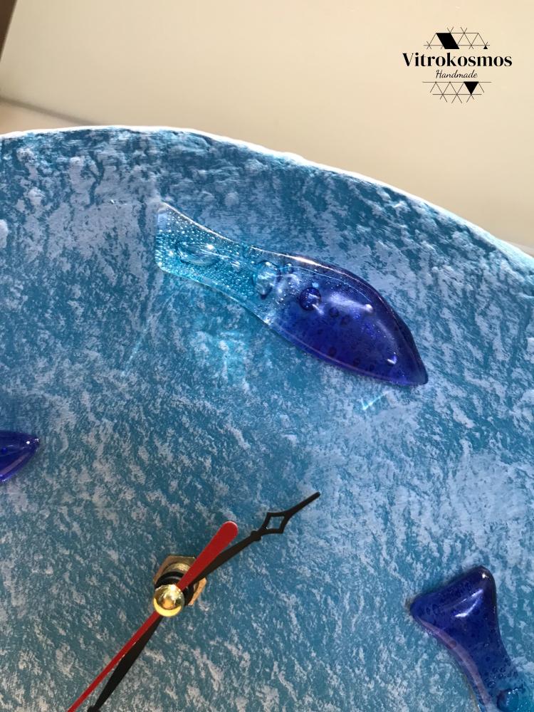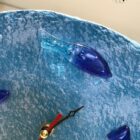Το «Moment» συνδυάζει τη γλυπτική υφή του papier-mâché με τη διαφάνεια και τη λάμψη του γυαλιού fusing. Η ημικυκλική του μορφή, σε αποχρώσεις του τιρκουάζ, θυμίζει θαλασσινό τοπίο, ενώ τα χειροποίητα γυάλινα ψαράκια δημιουργούν αίσθηση κίνησης και ζωντάνιας.