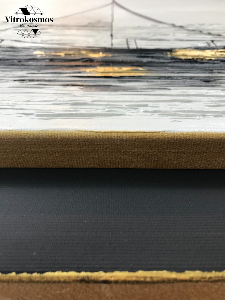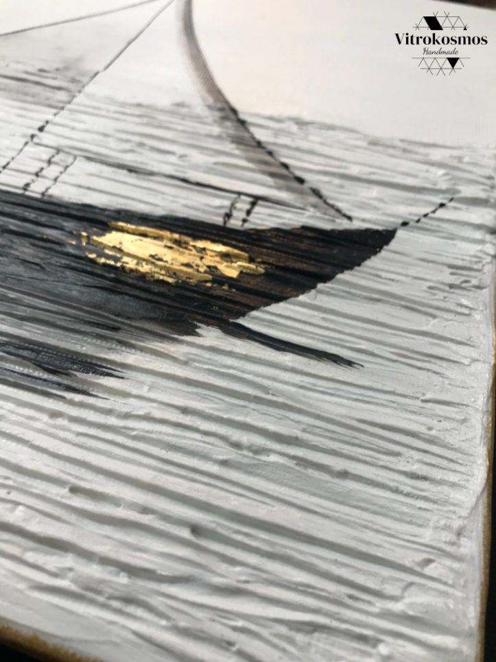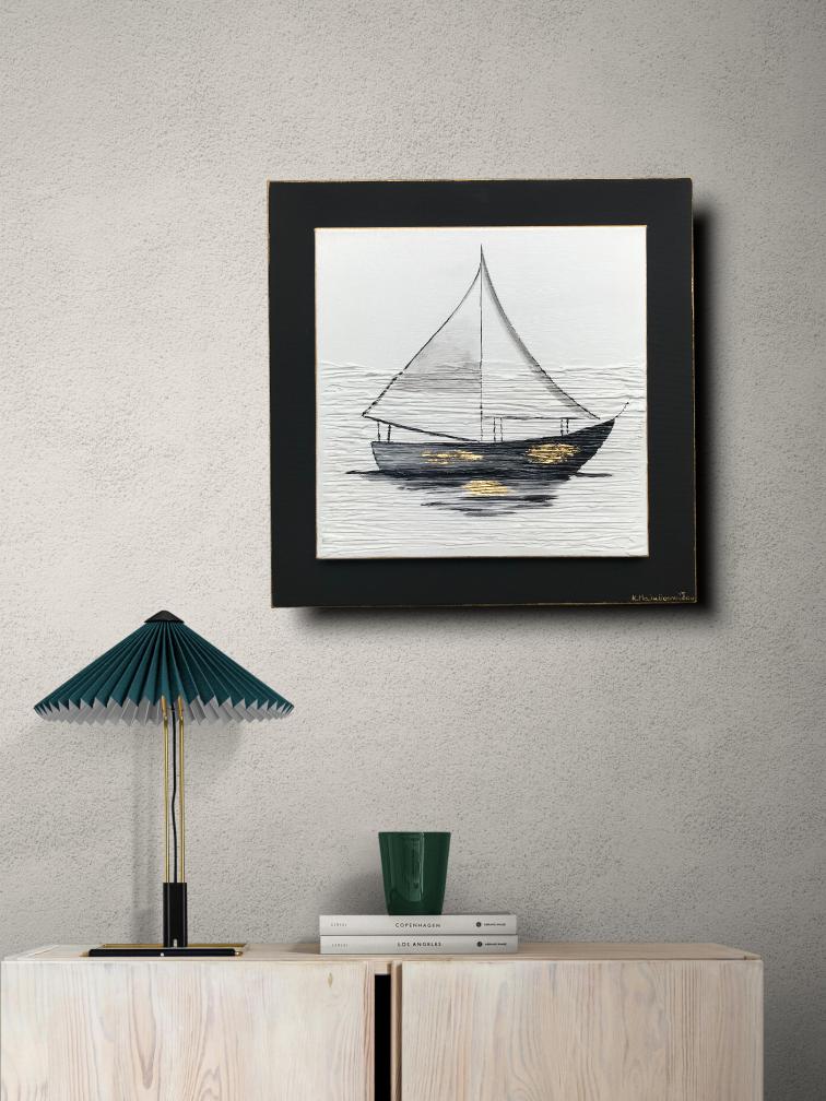 Το Vela είναι ένας μοναδικός χειροποίητος πίνακας που αποτυπώνει την ηρεμία της θάλασσας και την ελευθερία του ταξιδιού. Η τεχνική καμβάς πάνω σε καμβά δημιουργεί φυσικό εφέ κορνίζας, χαρίζοντας στο έργο βάθος και κομψότητα, χωρίς πρόσθετα πλαίσια. Οι λιτές γραμμές του ιστιοπλοϊκού, συνδυασμένες με τις διακριτικές χρυσές πινελιές, αποπνέουν αρμονία και διαχρονική αισθητική. Το έργο είναι έτοιμο για κρέμασμα, ενώ μπορείτε να επιλέξετε το χρώμα της κορνίζας ώστε να ταιριάζει άψογα στον χώρο σας.